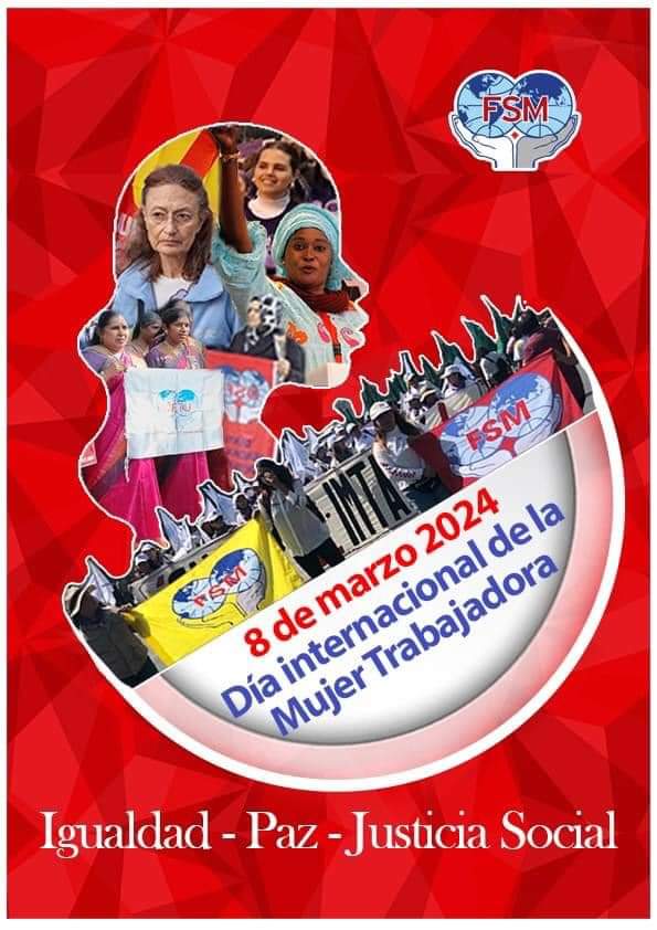 La FSM honra respetuosamente este día y dirige un saludo militante a todas las mujeres de todos los rincones del mundo. Para la FSM, la lucha por la emancipación de la mujer y la garantía de todos los derechos de la mujer ocupa un lugar destacado entre sus prioridades. La FSM hace un llamamiento a sus organizaciones miembros para que actúen de manera que los derechos de las mujeres sean una parte integral de su lucha: